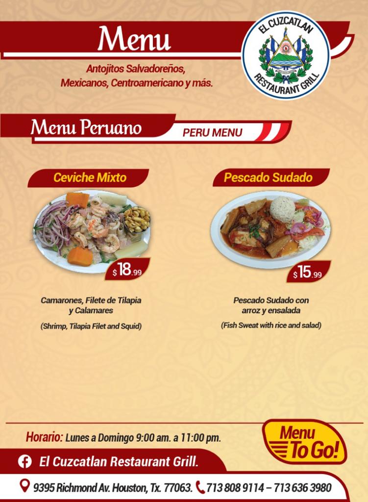 Welcome to El Cuzcatlan, a vibrant gem nestled in Houston, Texas, where the essence of Salvadoran cuisine meets warm hospitality. Known for its exceptional dishes like pupusas and tamales de elote, this restaurant stands out with its generous portions and authentic flavors that transport you straight to El Salvador. Customers rave about the ceviche as well, making it a must-try for seafood lovers.
