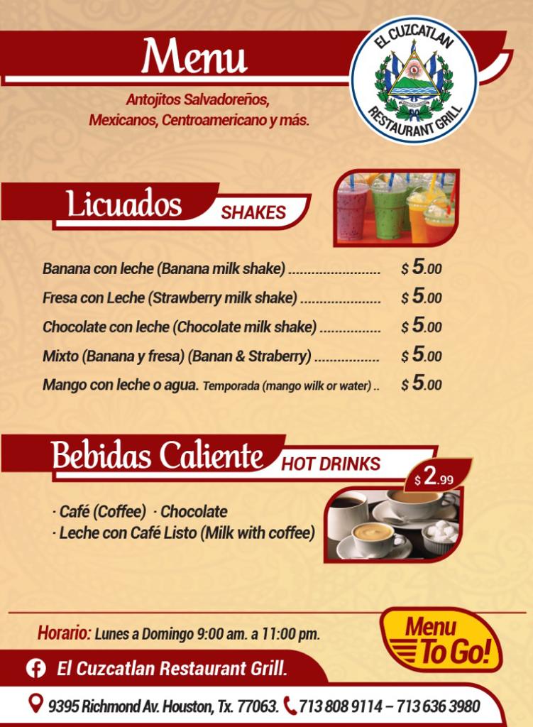 Whether you're familiar with Salvadoran flavors or a first-time explorer, El Cuzcatlan guarantees deliciousness and satisfaction in every bite.